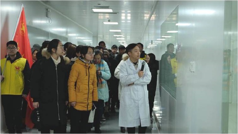 鱼跃集团讲解员向大学生们介绍鱼跃文化