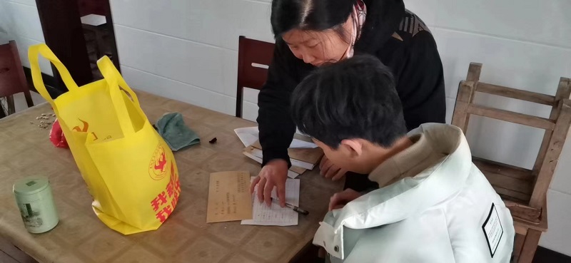 爱心人士买上学习用品与志愿者一起上门、夫妻同行、父母带着孩子一起走访......温馨感人的画面再一次重现。虽然这次春节慰问战线被拉长,过程被重复,9个片区负责人高度配合,精心安排走访任务,20余组志愿者们没有退缩,时间紧、任务重,他们合理分工,有机调整,在2、3天时间里,剩余225名孩子的助学金及慰问物资已全面发放到位。