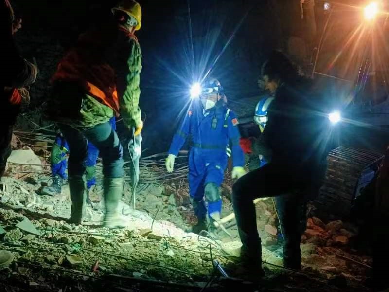 时间就是生命,所有队员顾不上一路劳累,在当地向导和翻译带领下携带装备前往救灾现场,经过连续20小时挖掘终于将一名幸存者营救出来,后经了解我们当晚到达的位置为一栋24层楼房楼顶,因怕楼房压垮造成幸存者二次伤亡,大型机械无法作业,加上余震不断,只能使用简易破拆工具和徒手搬运连续向下挖了约16米,才找到这位幸存者。期间还发现尸体若干具,其中让我最忘不了的是挖掘到一对父子遗体时的画面,父亲紧紧抱着孩子,用自己的身体挡在孩子的上方,他是想把生的希望留给孩子吧。经过连续100多小时救援共搜救出幸存者2人,遗体若干具。