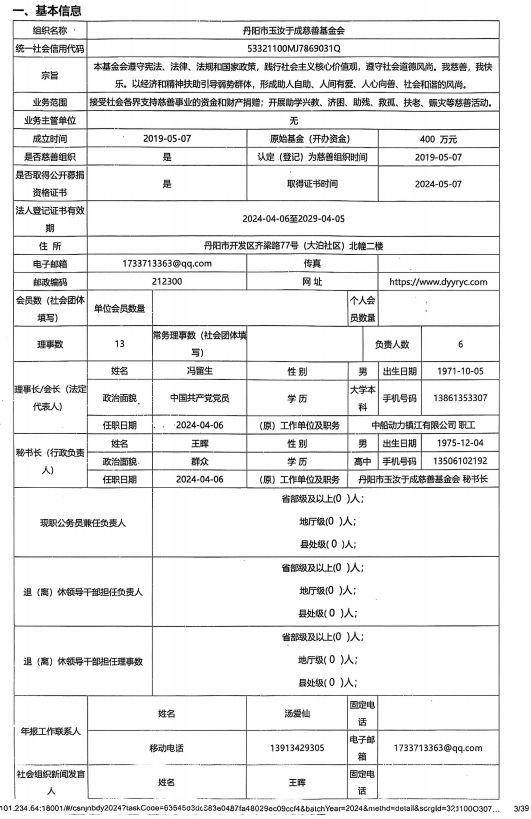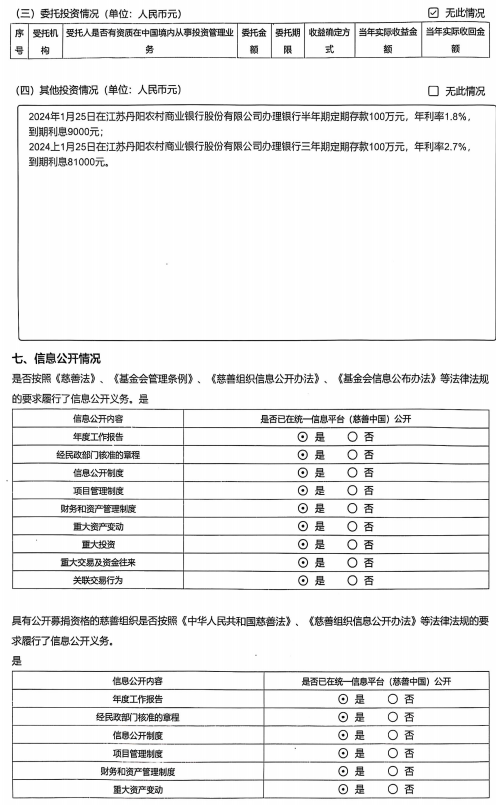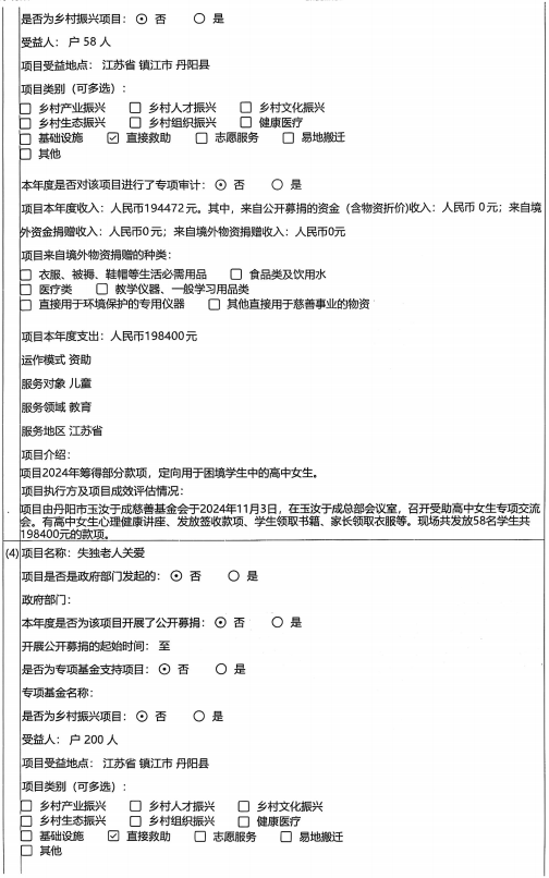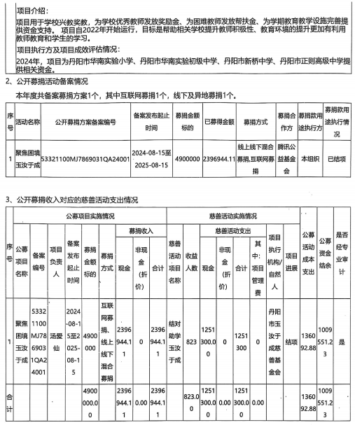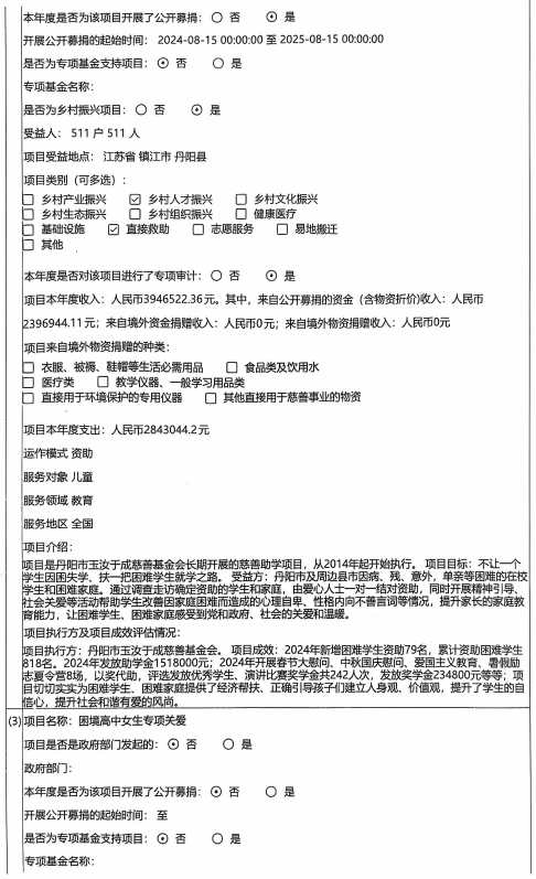 丹阳市玉汝于成慈善基金会2024年度工作报告